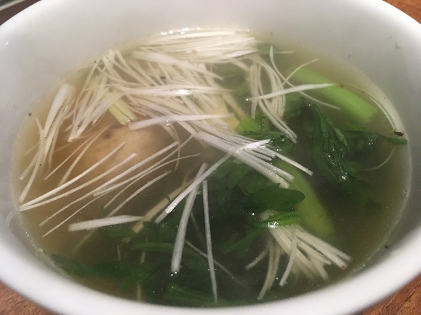 スープはあっさりしていて美味しいです。この出汁はラーメンだけじゃなくて、何にでも使えるかと思いました。うん、これだけで美味しい。
