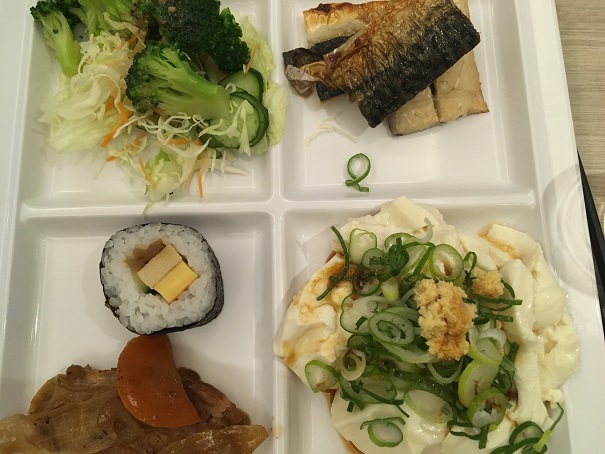朝ごはんは、ビュッフェ。まあ、こんなもん。鯖を食べまくり。