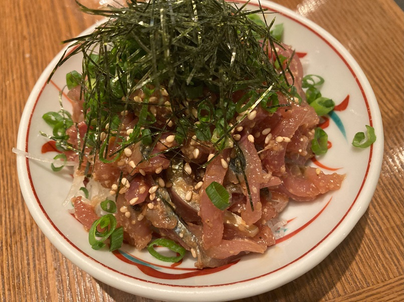いろいろな種類のハイボールがあって、店がハイボール推しなのかと思い、ハイボールを飲みました。肴は、カウンターに並んでいる赤えびが美味しいそうだったので、それを頼んだのと、おまかせ3種を頼みました。