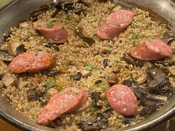 スペイン料理なので、ポルチーニ茸のパエリアを頼みました。いや、リゾットなのかな。ポルチーニ茸がかなり入っていて、香りもよく濃厚で、すごく美味しかったです。あとは、スペイン風のオムレツ。具がいい感じで大満足でした。