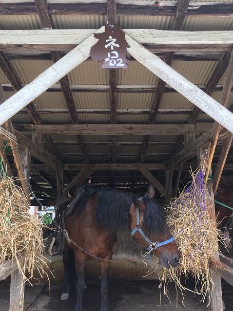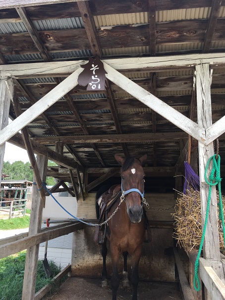 お目当ての乗馬体験。私が乗ったのはホタル。富良野だけにホタルという名らしいです。