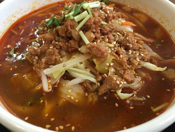 食べると、麺はうどんのような太さで、ちょっとアルデンテな食感。味は見た目通り、濃い味付けです。激辛にしたのですが、ほど良い辛さで、良かったです。