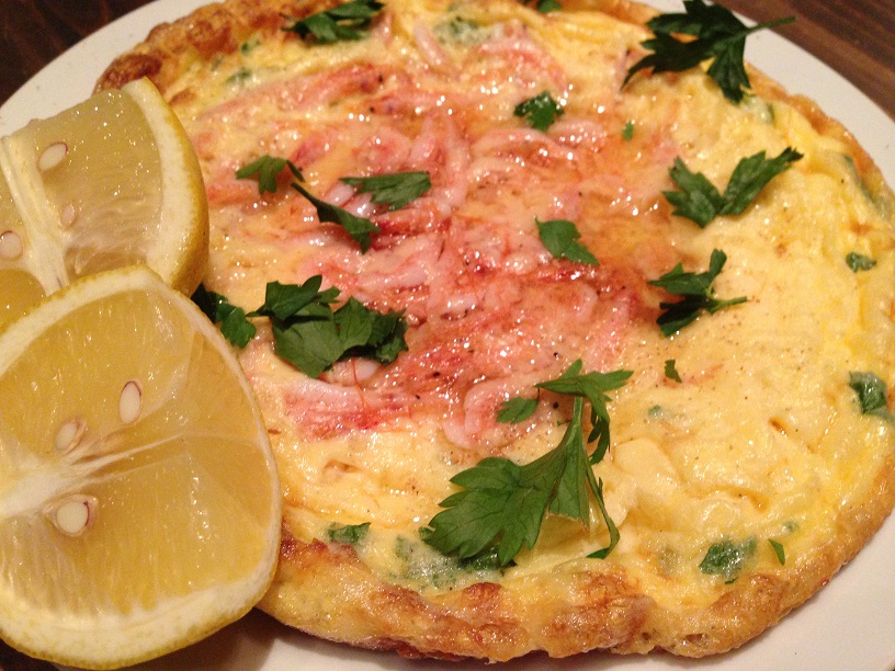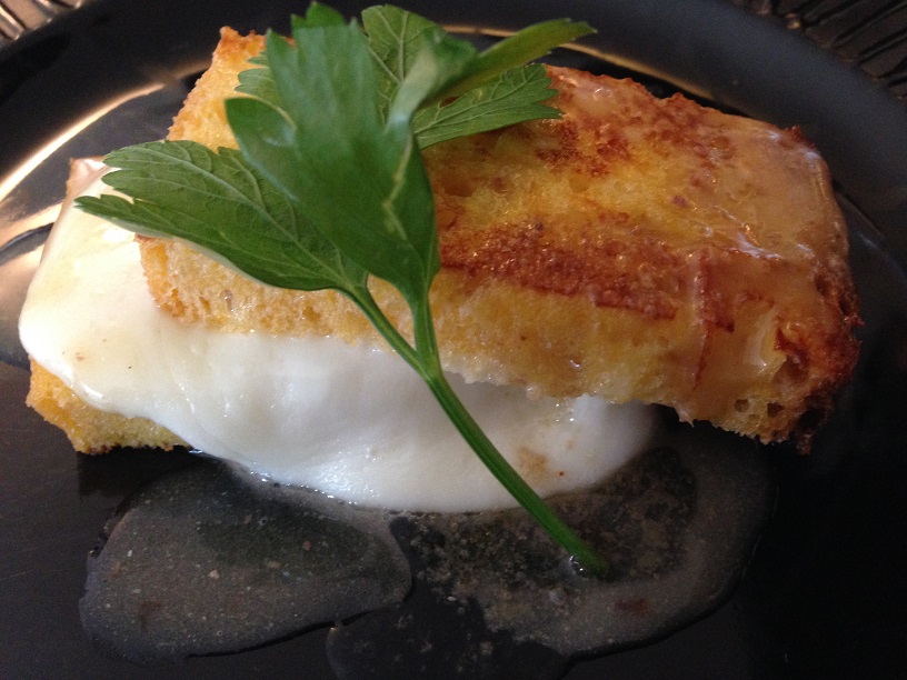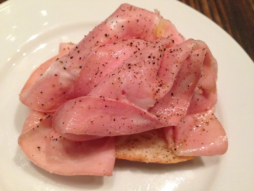 最初に出てきた、スペイン風オムレツ。オムレツというよりケーキのような形で、ジャガイモたっぷりで、マッシュポテトのような感じで、美味しかったです。