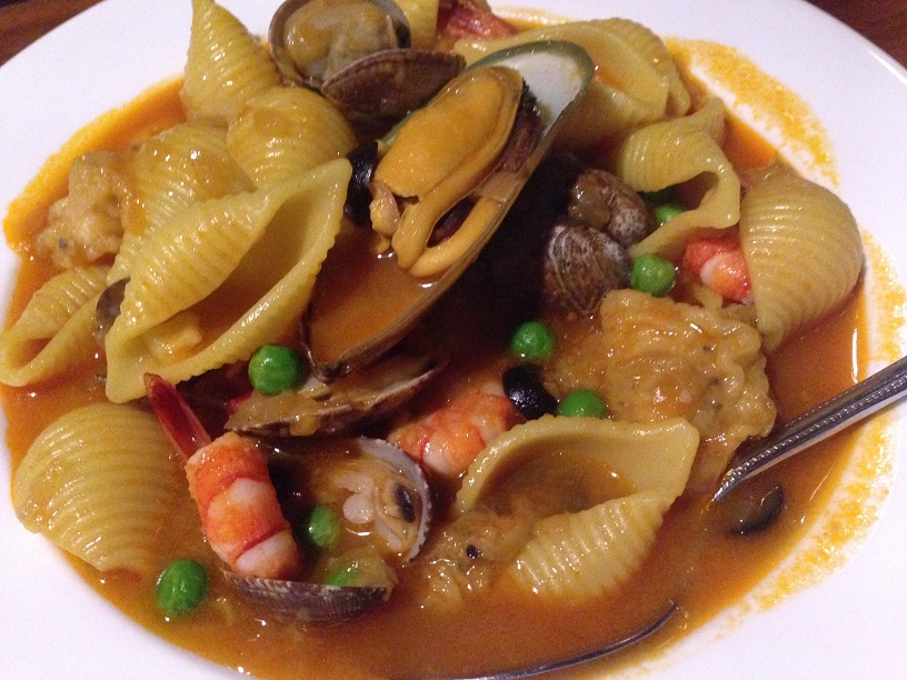 魚介の煮込みも、いいダシが出ていて美味しかったです。中にはパスタとライスもあって、かなりボリューミーで、満足度の高い一品だと思います。