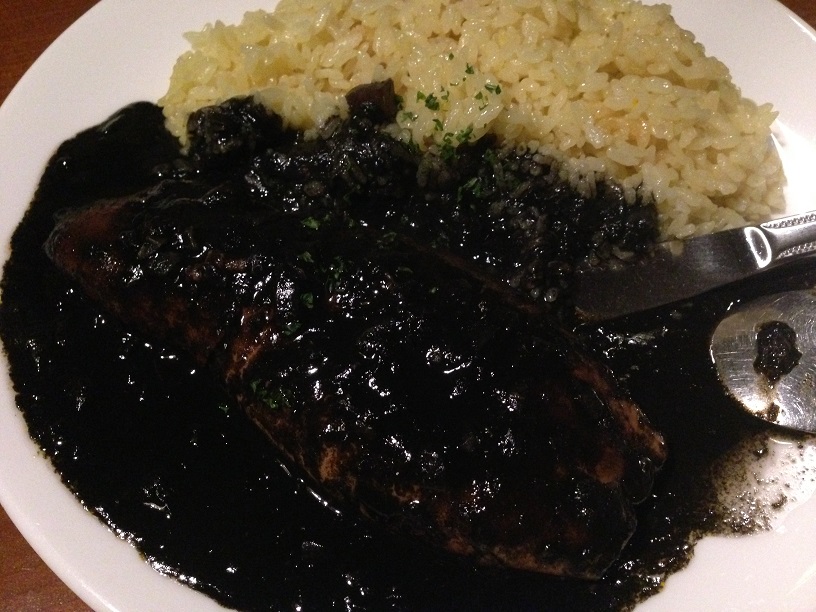 メインですが、私は、イカの黒煮にしたのですが、これは、ごく普通でした。烏賊が少し固めだったのがいまいちでした。イカ墨は味があるわけではないので、本日、食べたものの中では、一番、ダメでした。烏賊をもっといいものを使えば、もっと美味しくなると思います。