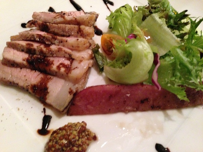 メインは豚で、脂の乗りの良く、ビーフシチューのような味付けで、美味しかったです。ただ、他の人が頼んだ蝦夷鹿も美味しそうでした。