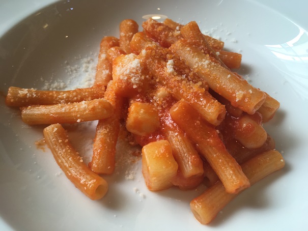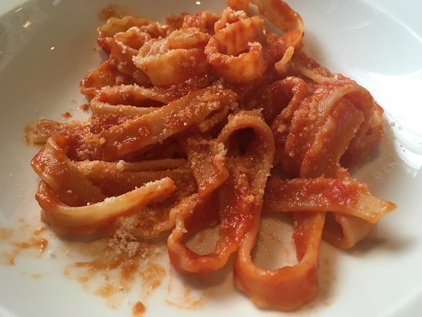 パスタはちょっと少なめの印象ですが、麺にコシがあって、美味しいです。