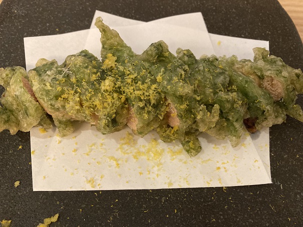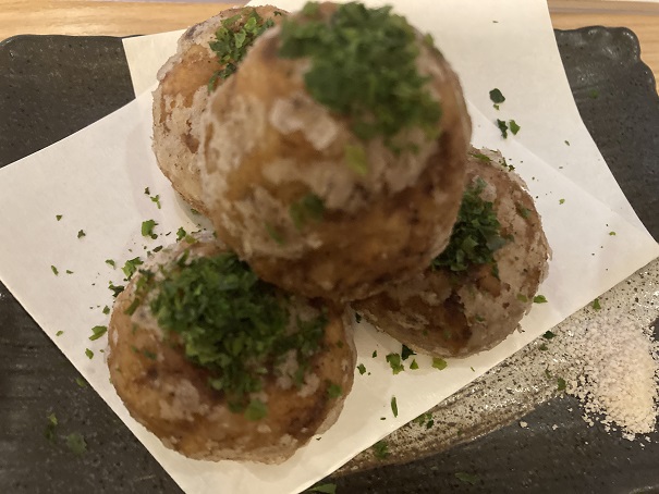 じねんじょ庵という店の名前なんだから、自然薯がおすすめなんだろう、ということで頼んでみました。あとは蕎麦を揚げたものを、口さみしいので頼み、日本酒を飲みました。