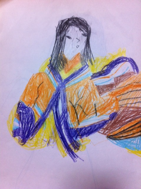 プリンセス好きな長女は、十二単が気に入って絵を描き始め、ノリノリ。