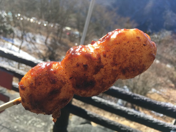 寒いし、少しお腹がすいたので、いも田楽とだんごを買い食いしました。