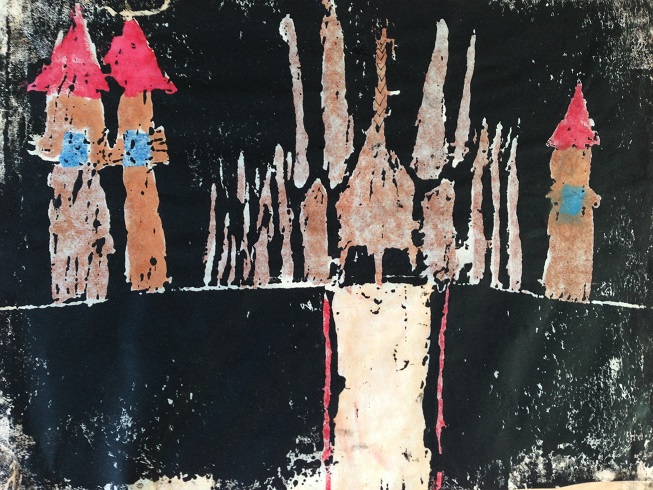 左のサグラダファミリアは、長女の版画。寂しいからと余計なものを付け加えて、文字通り、蛇足感がありますが、なかなか良い出来です。