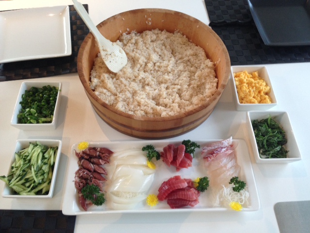もう、あとは、巻くだけ。大盛り上がり。ホタルイカまで巻いちゃいました。
