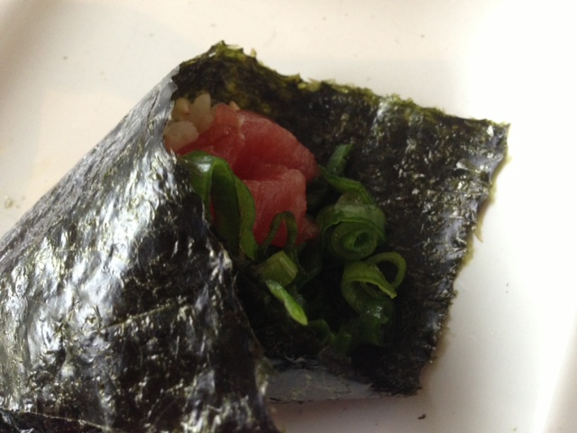 写真の太巻きは、すぐそばにある系列店の鮨屋、まぐろ人からの出前という扱いです。
