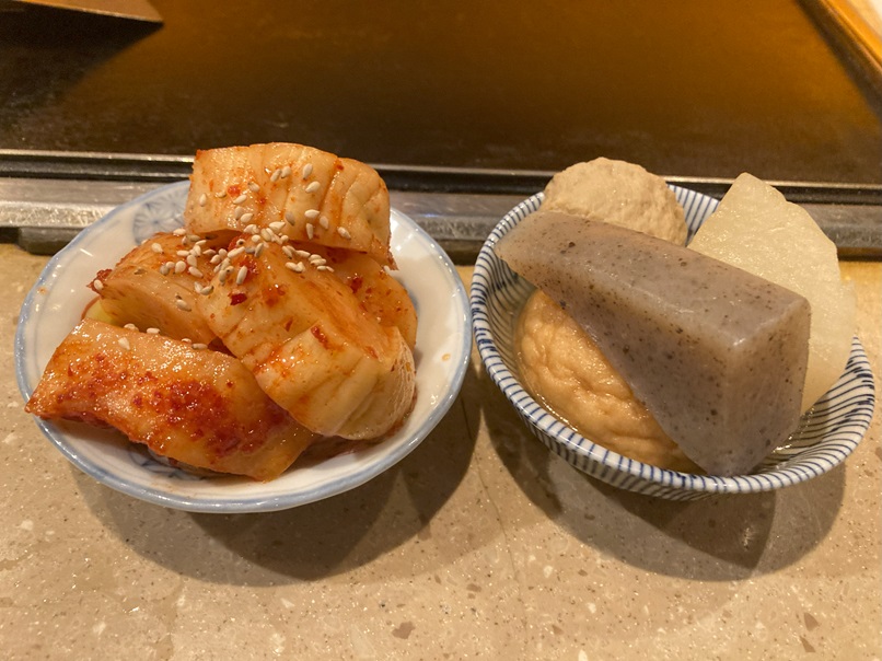 前菜のキムチナムルの盛り合わせからはじまり、炙り焼き黒毛和牛のネギ塩と卵黄タレ、特上生タン、特上ハラミ・サガリ、特上ヒレロース、わかめスープ、特上ホルモン三種盛り、特製牛タンカレー、ライム冷麺、アイスというフルk-ス。